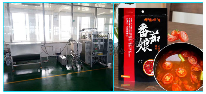 客戶廠房星火火鍋料包裝機(jī)設(shè)備及包裝樣品展示