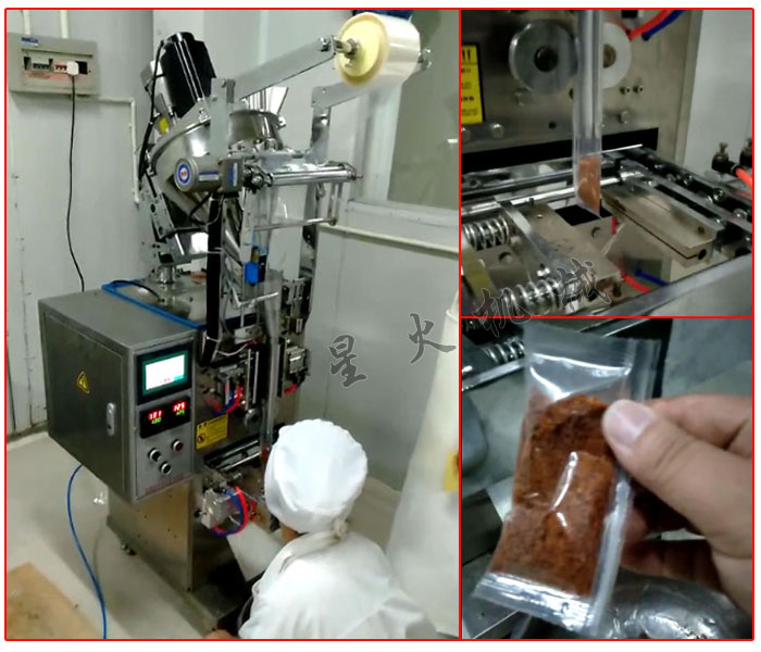 北京聚鑫源公司星火燒烤調(diào)料包裝機(jī)包裝現(xiàn)場展示